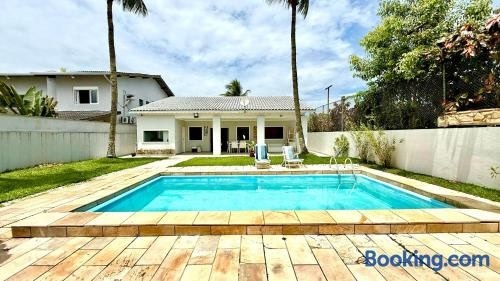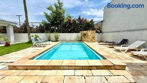 Linda Casa no Jardim Acapulco - Piscina e Churrasqueira - 8 Pessoas ligger i Guarujá, 8 minutters gange fra Praia de Pernambuco-stranden og 12 kilometer fra Guaruja bussterminal, og tilbyret utendørsbasseng og klimaanlegg.