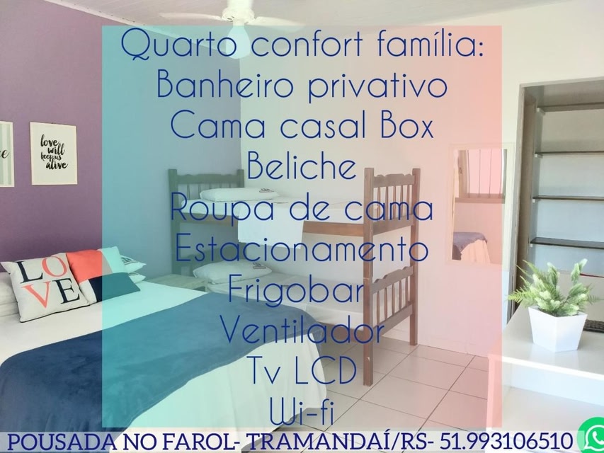 Set in Tramandaí, 600 metres from Tramandai Beach, Pousada No Farol offers accommodation with free WiFi and free private parking. The inn features family rooms. The units in the inn are equipped with a flat-screen TV.