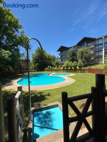 Apartamento familiar en Pucón ligger bare 16 kilometer unna Villarrica – Pucón og tilbyr overnatting i Pucón med tilgang til et sesongåpent utendørsbasseng og en terrasse, i tillegg til en døgnåpen resepsjon.