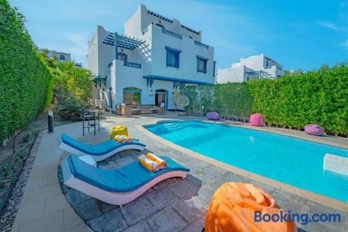 Boasting air-conditioned accommodation with a private pool, pool view and a balcony, Spacious villa with private pool is situated in Hurghada. This property offers access to a terrace, free private parking and free WiFi.