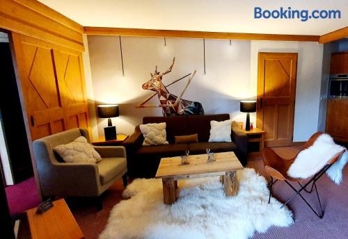 Appartement ARC 1950 m, Ski au pied, piscine extérieure chauffée, remontées mécaniques à 100m, sauna et salle de sports ligger i Arc 1950 og har privat basseng. Overnattingsstedet ligger 29 kilometer fra Les Arcs/Peisey-Vallandry.