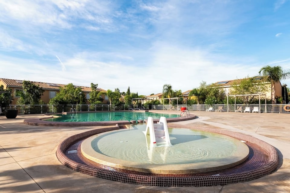 The Résidence*** Les Demeures Torrellanes is located just 7 minutes’ drive from Saint Cyprien Plage and its beach and just 4 km from Elne Train Station. It offers houses, an outdoor swimming pool and fitness room and a children's playground.