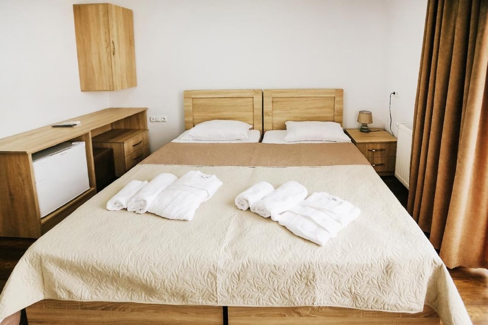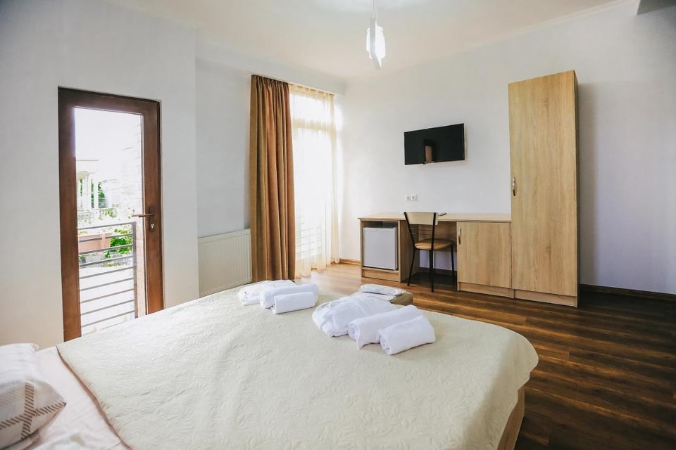 Located a 6-minute walk from Colchis Fountain, Balanchine offers 3-star accommodations in Kutaisi and has a garden, a terrace and a bar. The property is around 3.6 miles from Motsameta Monastery, 5.5 miles from Gelati Monastery and 13 miles from Prometheus Cave. The property has a 24-hour front desk, airport transportation, room service and free WiFi throughout the property. All guest rooms come with air conditioning, a flat-screen TV with cable channels, a fridge, a coffee machine, a bidet, free toiletries and a desk. With a private bathroom equipped with a shower and a hairdryer, some rooms at the hotel also have a city view. All rooms will provide guests with a closet and an electric tea pot. Popular points of interest near Balanchine include Kutaisi Train Station, White Bridge and Bagrati Cathedral. Kutaisi International Airport is 22 miles from the property.