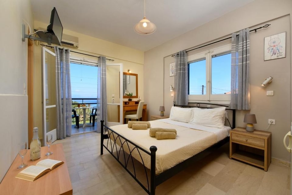 Offering a bar and sea view, Pension Elena is located in Ágios Nikólaos, a few steps from Notos Beach and 21 km from Achilleion Palace. This beachfront property offers access to free WiFi and free private parking.