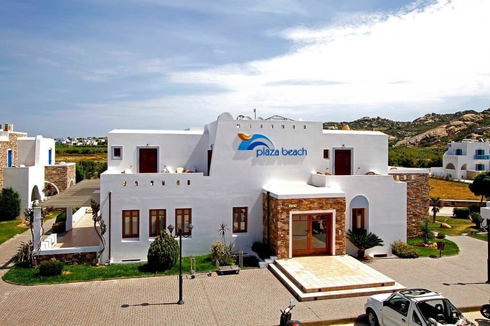 Just a few steps from the sandy beach of Plaka, the Cycladic-style Plaza Beach includes a swimming pool and is surrounded by landscaped gardens. It offers elegant accommodation with free Internet access.