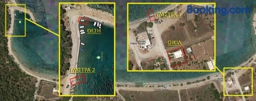 House on the beach ligger i Salamís i Attika, og har en hage. På dette overnattingsstedet har du tilgang til balkong, gratis privat parkering og gratis WiFi. Dette feriehuset har utsikt mot sjøen og fjellet og har 2 soverom og terrasse.