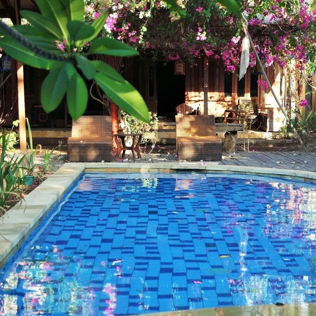 Boasting a garden, terrace and views of garden, Omah Gili Hotel is situated in Gili Air, 200 metres from Gili Air Beach. Featuring an outdoor swimming pool, the 2-star hotel has air-conditioned rooms with free WiFi, each with a private bathroom.