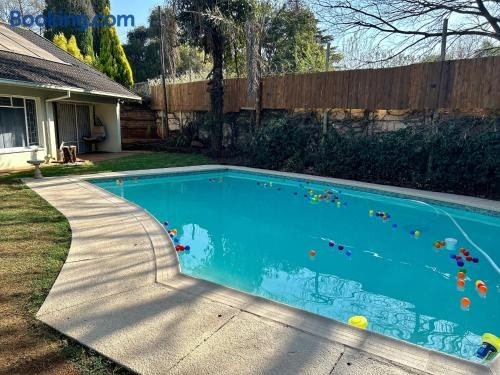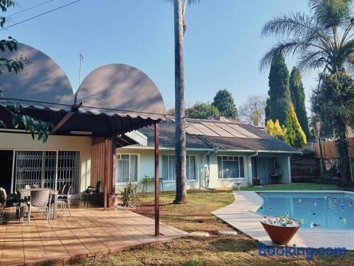 Spacious Entire House in Menlyn, Sleeps 8, Ideal for Groups tilbyr overnatting med et utendørsbasseng og uteplass i tillegg til utsikt over hagen. Her bor du bare 4,9 kilometer unna Pretoria Country Club.