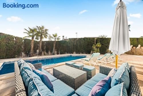 Villa Quesada ligger i Rojales og har privat basseng, balkong og utsikt over hagen i tillegg til klimaanlegg. Denne villaen har uteplass og gratis WiFi.