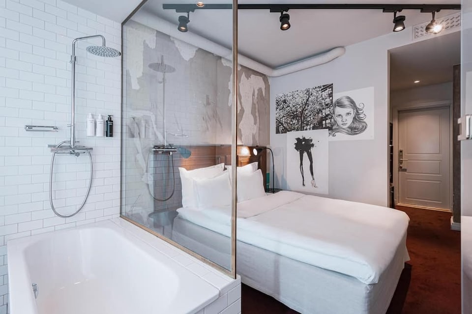 This stylish hotel is 100 metres from Stockholm's Östermalmstorg Metro Station. Its designer rooms feature large LCD TVs, complimentary mineral water and free WiFi. Story Hotel’s unique rooms offer the best in modern design and chic décor.