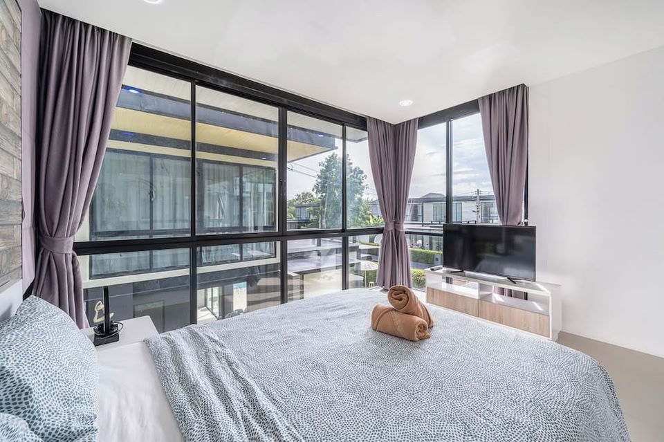 Huai Yai, a neighborhood in Bang Lamung, is home to this vacation home. Walking Street and Pattaya Beach Road are worth checking out if shopping is on the agenda, while those wishing to experience the area's natural beauty can explore Jomtien Beach and Dongtan Beach. Looking to enjoy an event or a game while in town? See what's happening at Eastern National Sports Training Center, Pattaya Sports Stadium or Pattaya Kart Speedway. Located in Bang Lamung, this welcoming vacation home brings it all within your reach. With convenient uncovered onsite parking, you'll be ready to make the 16-minute drive to Jomtien Beach or the 20-minute drive to Bang Saray Beach. After you return, you can unwind by the outdoor pool or sip a drink in the picnic area; you may also like the outdoor furniture and charcoal grill. For a change of scenery, come inside and enjoy the free WiFi and flat-screen TV. As you settle into this 3-bedroom rental, you'll find air conditioning and blackout drapes/curtains. Bathroom amenities include a hair dryer, towels, and toilet paper. And you can even travel light because you'll have access to laundry facilities.