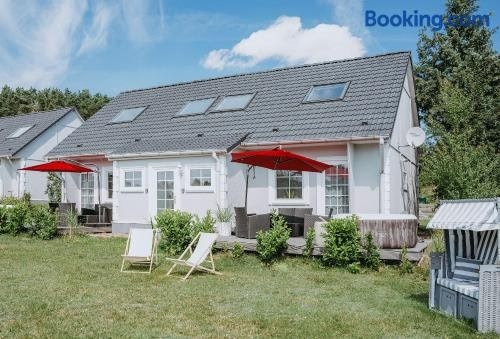 Sammenlign tilbud på Ferienhäuser Insel Usedom Haus Jojo 7 - Blick Aufs Achterwasser! Whirlpool und Sauna på tvers av hundrevis av nettsteder på ett og samme sted